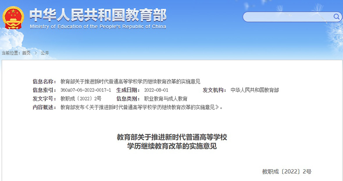 教育部關(guān)于推進(jìn)新時(shí)代普通高等學(xué)校 學(xué)歷繼續(xù)教育改革的實(shí)施意見