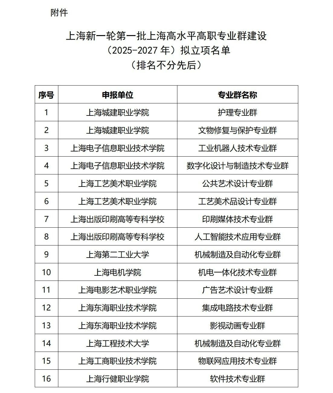 相關(guān)閱讀:關(guān)于上海新一輪第一批高水平高職專業(yè)群建設(shè)(2025-2027年)擬立項名單的公示